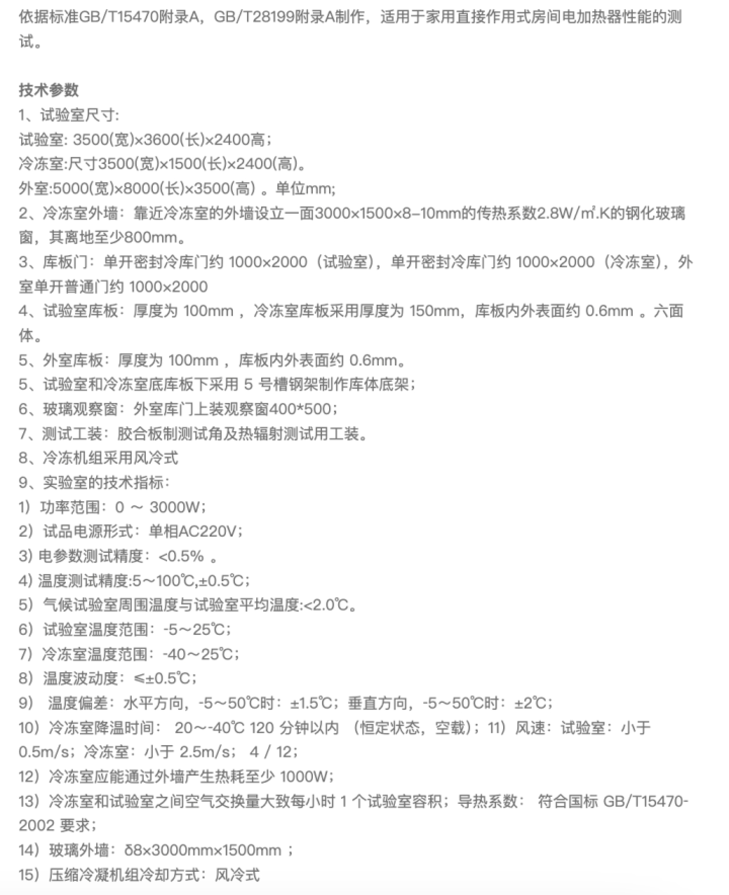 依據(jù)標(biāo)準(zhǔn)GB/T15470附錄A,GB/T28199附錄A作,適用于家用直接作用式房間電加熱器性能的試。